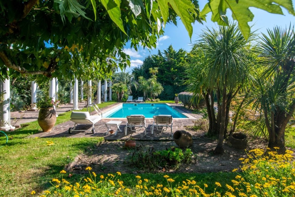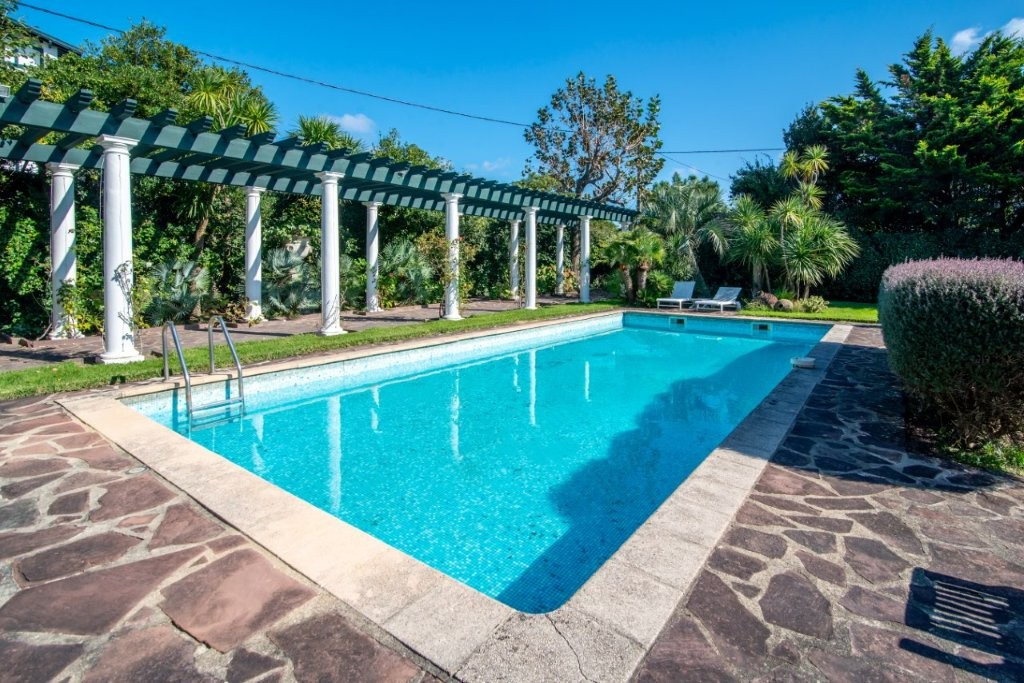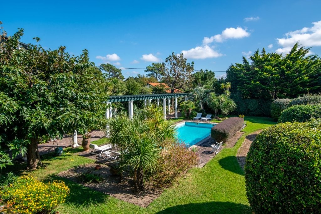 Anglet Golf du Phare, limite Biarritz, Élégante maison de caractère de 9 pièces de 230m² avec magnifique jardin à la française et piscine 5x11. Cette très agréable Maison est composée de 2 niveaux. Au 1er étage vous découvrirez un bel espace salon ouvrant sur une Terrasse au Sud avec vue sur le parc ainsi que 3 chambres, 1 bureau, 1 dressing et 2 salles de bains. Au rez-de-chaussée une grande cuisine, chaleureuse salle à manger ouvrant sur le jardin et 1 espace pour les amis comprenant 2 chambres et 1 salle de bains. Pour compléter le tout, la maison dispose de 2 garages, 1 cave, 1 espace "crampotte" et 1 terrasse barbecue/plancha à l'extérieur. L’ensemble compose un cadre de vie rare, à la fois familial, élégant et propice à la détente, idéal pour une résidence principale comme secondaire.