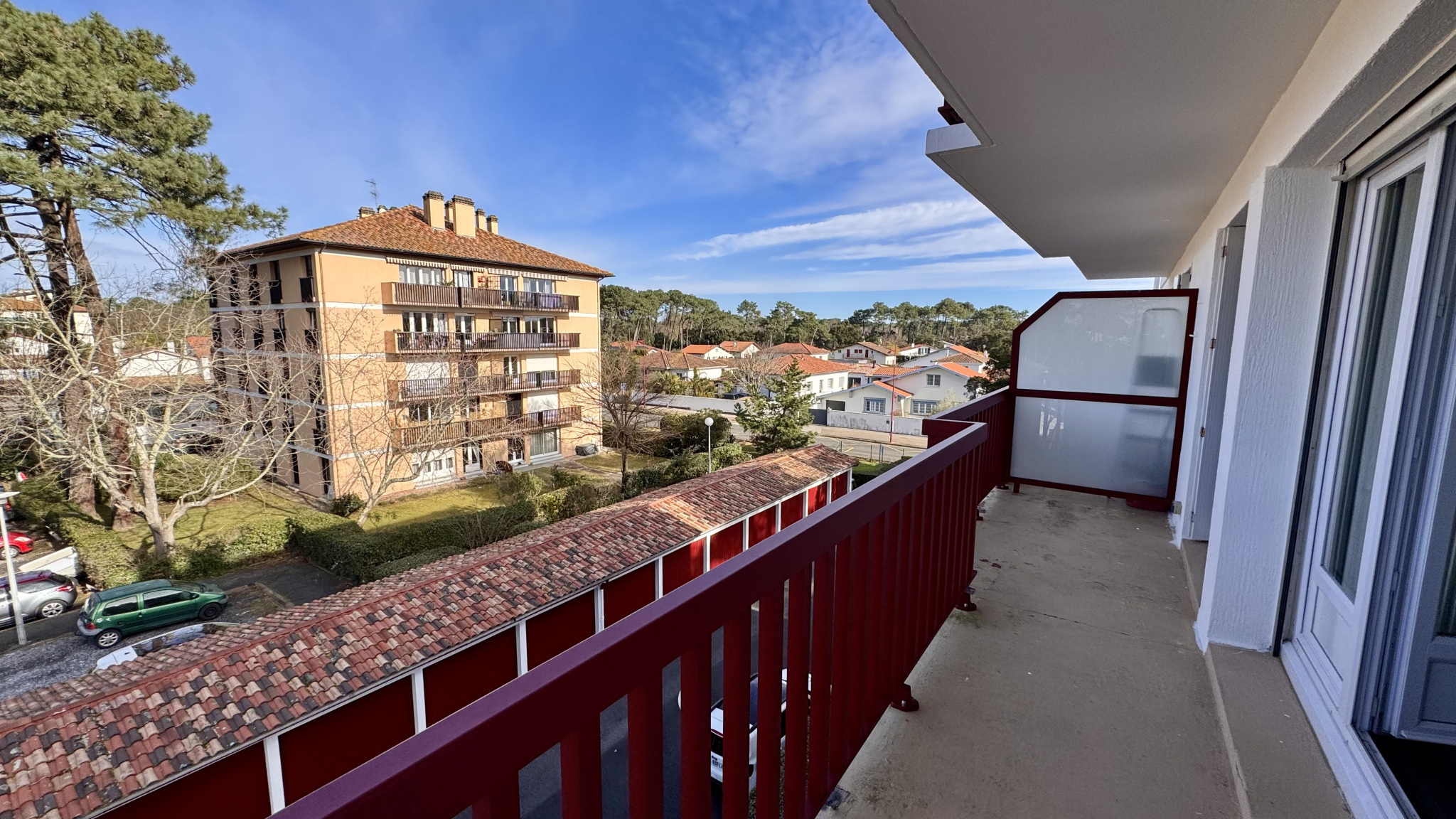 A Tarnos, au calme, proche des plages et des commerces, bel appartement T3 situé au dernier étage avec ascenseur d'une petite copropriété récemment ravalée (et en cours de constitution). L'appartement est orienté Nord/Ouest et Sud/Ouest. Il bénéficie de belles vues dégagées avec une vue sur la Rhune pour une chambre. Il se compose d'une entrée, un salon donnant sur un balcon, une cuisine aménagée donnant sur le même balcon, deux chambres dont une attenante au salon, une salle d'eau douche, wc séparés. L'appartement dispose d'un garage privatif, d'un parking extérieur privatif ainsi que d'un cellier.